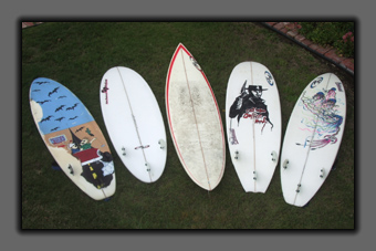 Take a look at the surfboards I have designed, shaped, and presented on this website and hopefully you will develop an appreciation for the simple beauty of a clear finished board under the shaping room lights, or the unique artwork that can make a surfboard a functional piece of art.