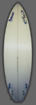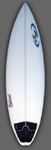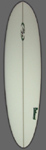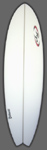 As the name implies, this is an original twin fin design which includes a “v” bottom, hooked wings and glassed on fins. This outline shape is patterned after the high performance twin fin designs that were ridden by MR back in the day, but includes some of my own tweaks and upgrades to usher the design into the current millennium. This is a fast, loose performance board that benefits from front foot pressure and a little extra rail.