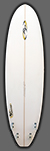 As the name implies, the Snub is a very short, wide, fat, round design, that has fun written all over its wide body. Designed for those really small, soft and gutless surf sessions where the Pudge is not quite enough board, the Fish is too straight and stiff, and your arms are too short to go around your Egg or longboard on this particular day. With gobs of planning surface, a relaxed rocker nose to tail, a bottom beveled nose rail, wide point ahead of center, and double concave to “V” off the tail, this board catches waves easily, carries speed, and has excellent maneuverability, even in the weakest of surf conditions. Your other boards standing in your garage rack will definitely be feeling “Snubbed” during the summer wave season!