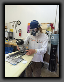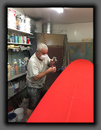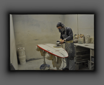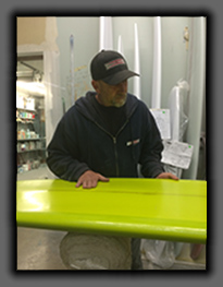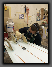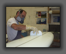 When you order a completely handmade polyurethane/polyester board from me, you can check on your board’s progress and know exactly where it is. It will be in the very capable hands of the surfboard craftsmen that do their work at Eric and Debbie Gordon’s Custom Surf Glass shop in San Diego, California. Their shop has been glassing boards for me for over 15 years and I know that when one of my shaped blanks disappears through their front door, the next time I see that blank, it will be a completely finished surfboard built to both my specifications and those of my customer, and will be of the highest quality.